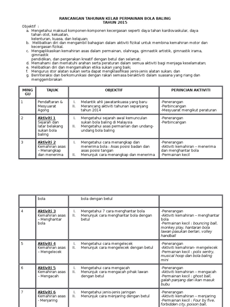 Doc Rancangan Pengajaran Tahunan Kelab Bola Baling Sekolah Kluster Kecemerlangan Skk Sarimaniza Ibrahim Academia Edu
