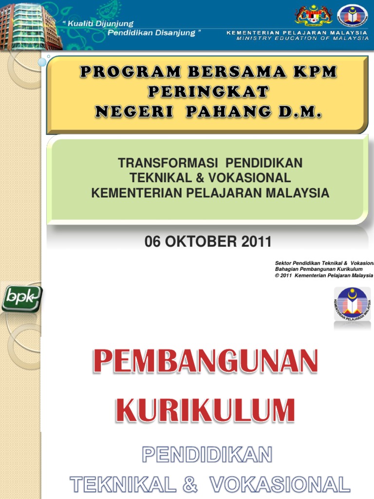 2011 10 Transformasi Kurikulum Ptv Oleh Bpk Kpm 2011 Program Bersama Kpm