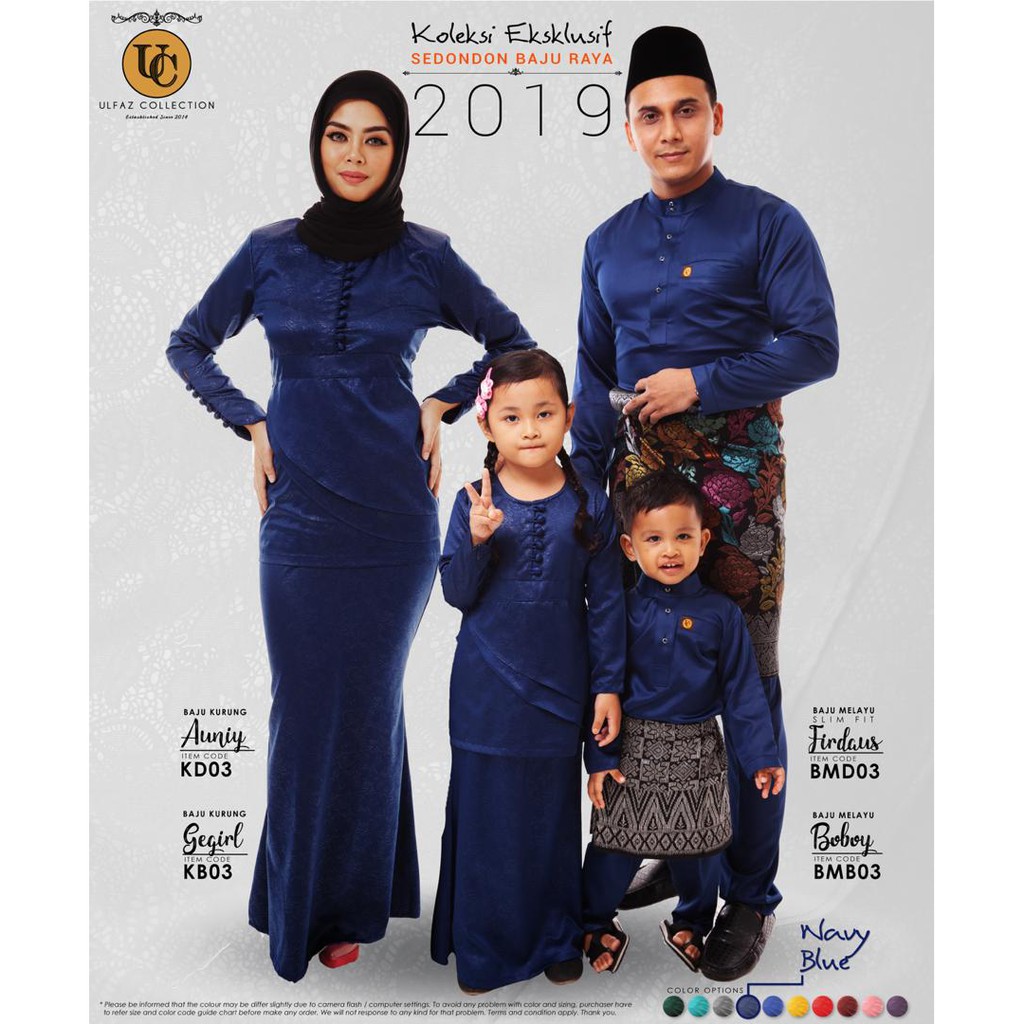 Set Sedondon Eksklusif Keluarga Raya 2019 Navy Blue Shopee Malaysia