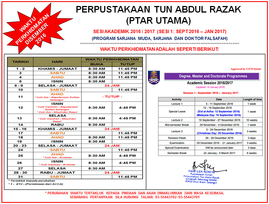 Makluman Waktu Perkhidmatan Perpustakaan Tun Abdul Razak U Flickr