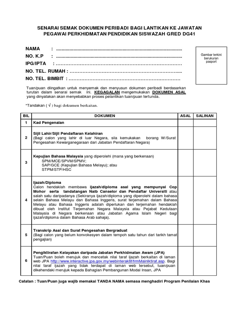Senarai Semak Calon Ppps Dg41